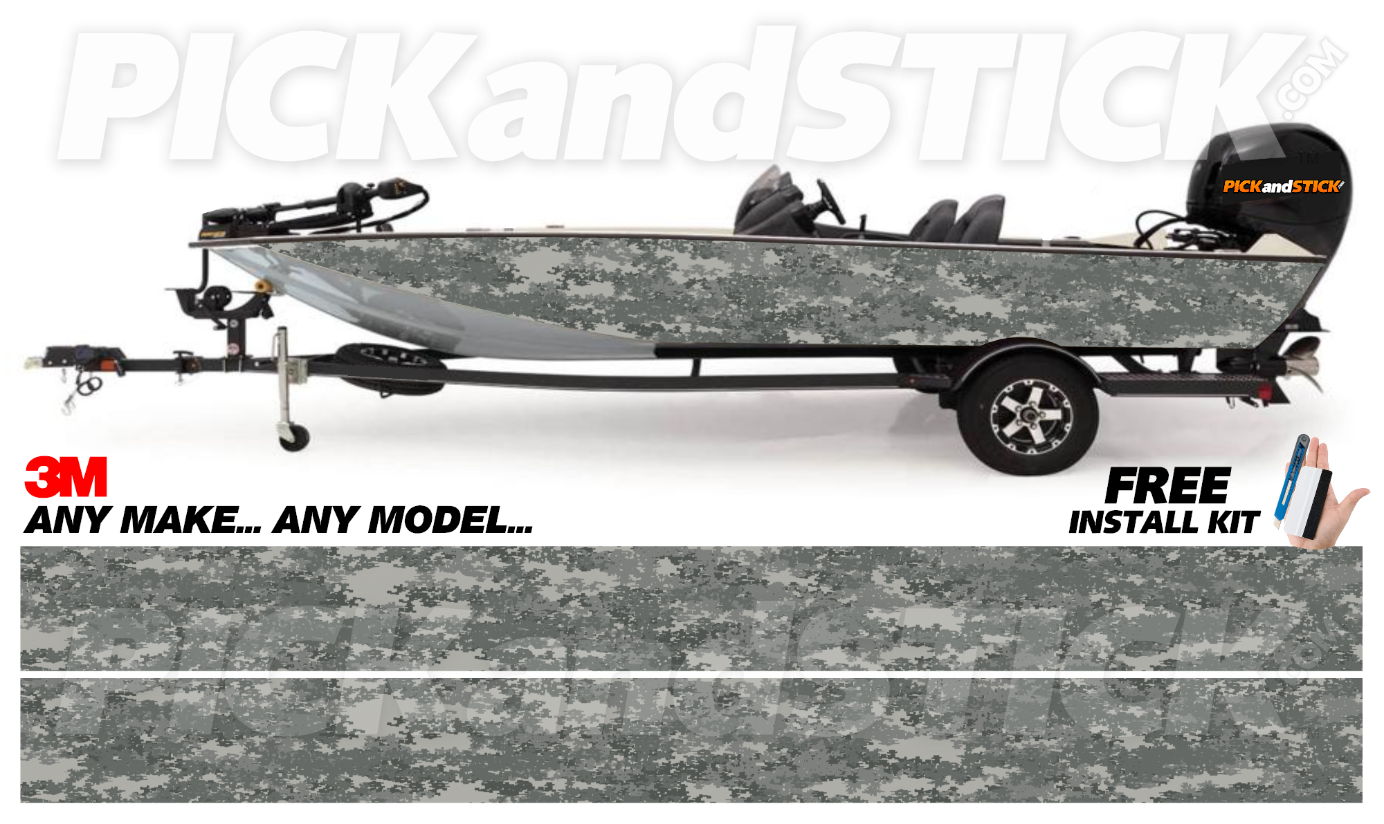 All boat wraps by Pick and Stick are printed with 3M MCS Certified HP Latex printers on industry-leading premium 3M wrap vinyl. All graphics are covered with a clear laminate to provide long term durability and UV protection against fading and are removable.