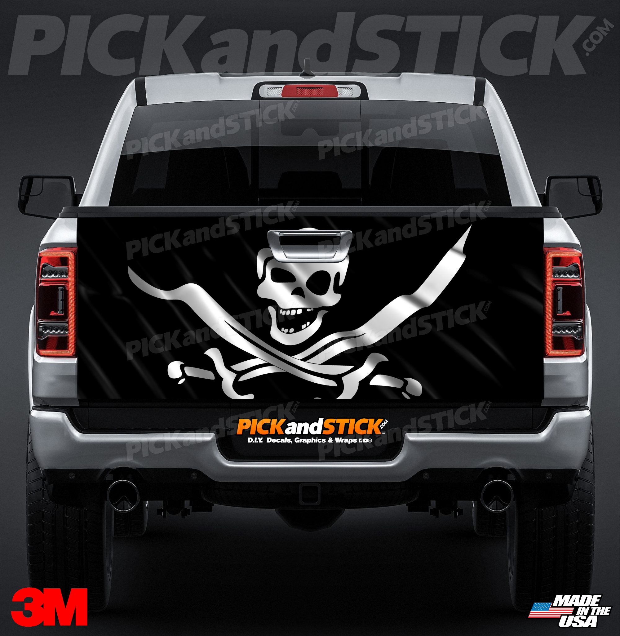 Pirate Skull Flag Tailgate Wrap by Pick and Stick is printed with 3M MCS Certified HP Latex printers on industry-leading 3M wrap vinyl.