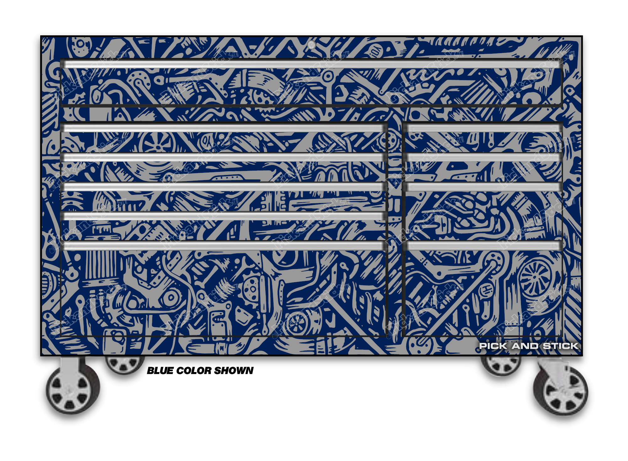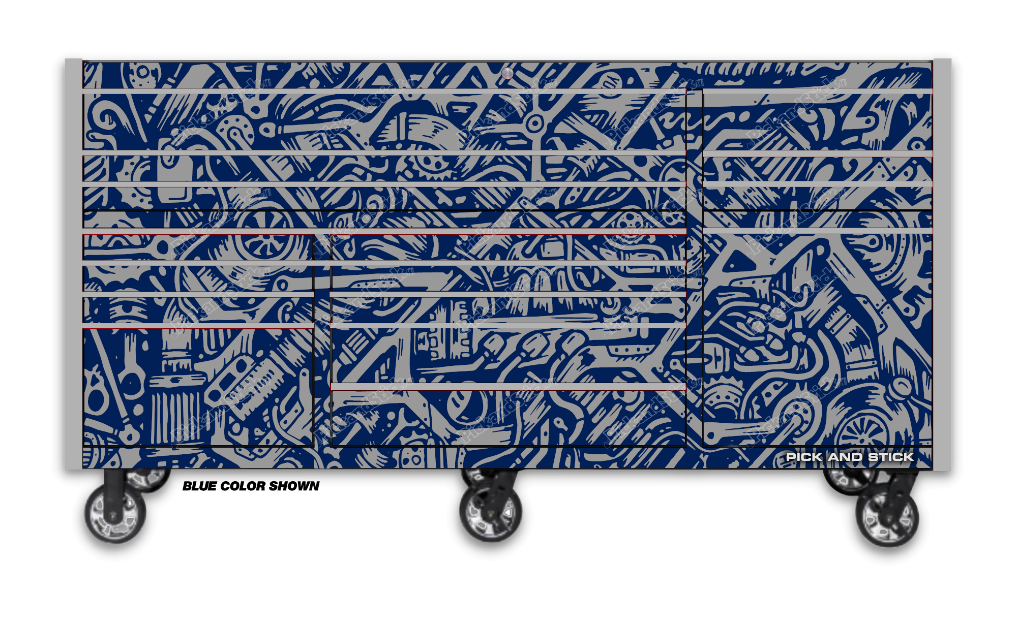 Graffiti Camo Blue Toolbox Wrap are printed with 3M MCS Certified HP Latex printers on industry-leading premium 3M wrap vinyl. All graphics are covered with a clear laminate to provide long term durability and UV protection against fading and are removable. You can easily trim to fit for a simple installation. If you need a custom size Contact Us.
