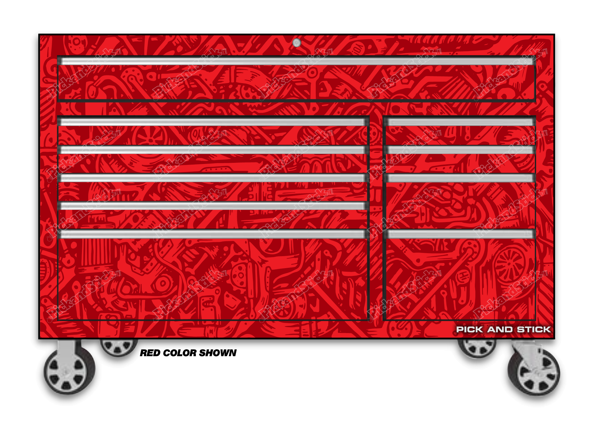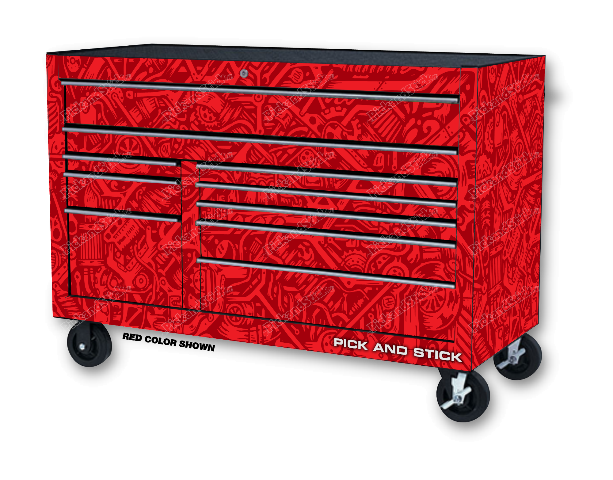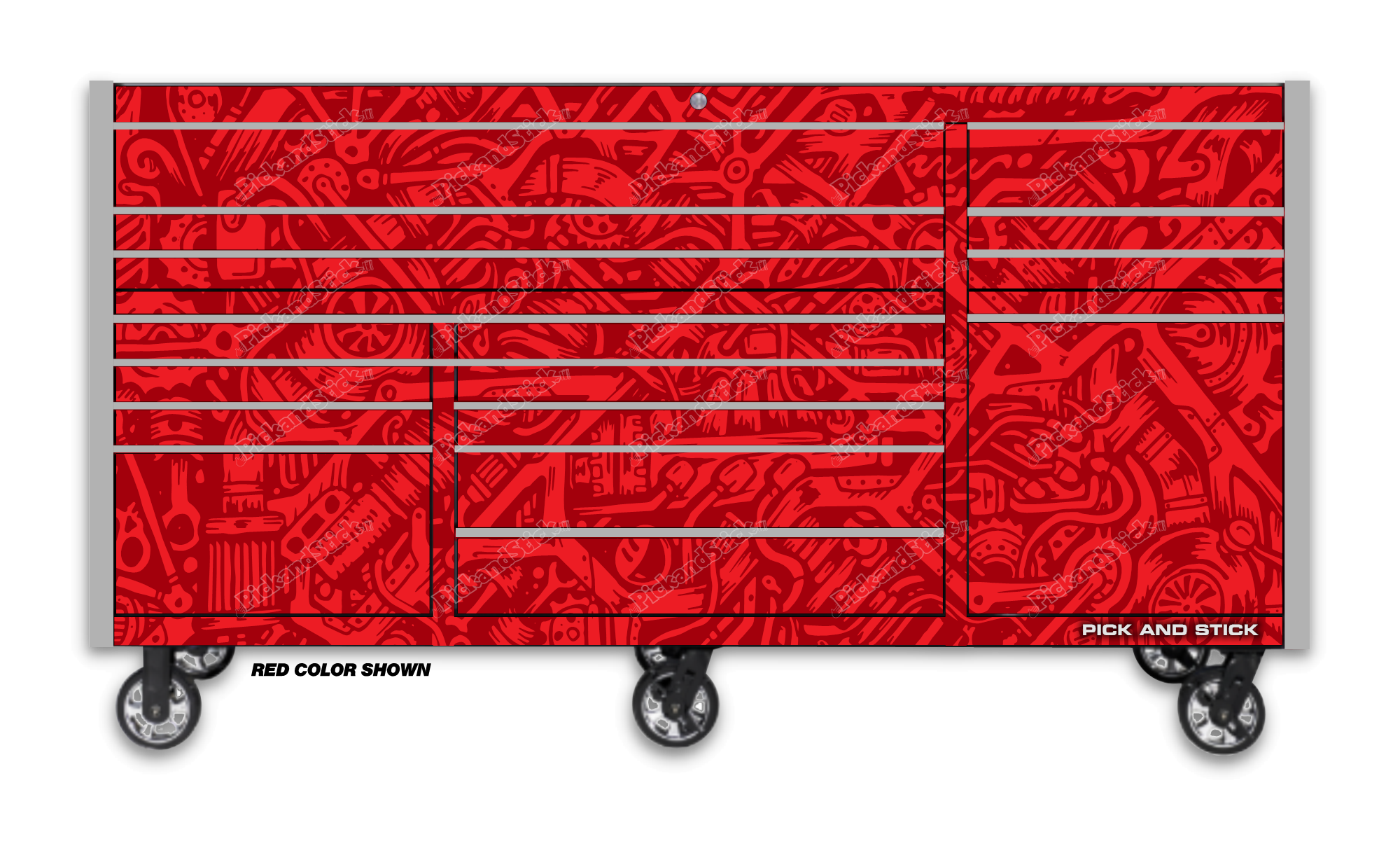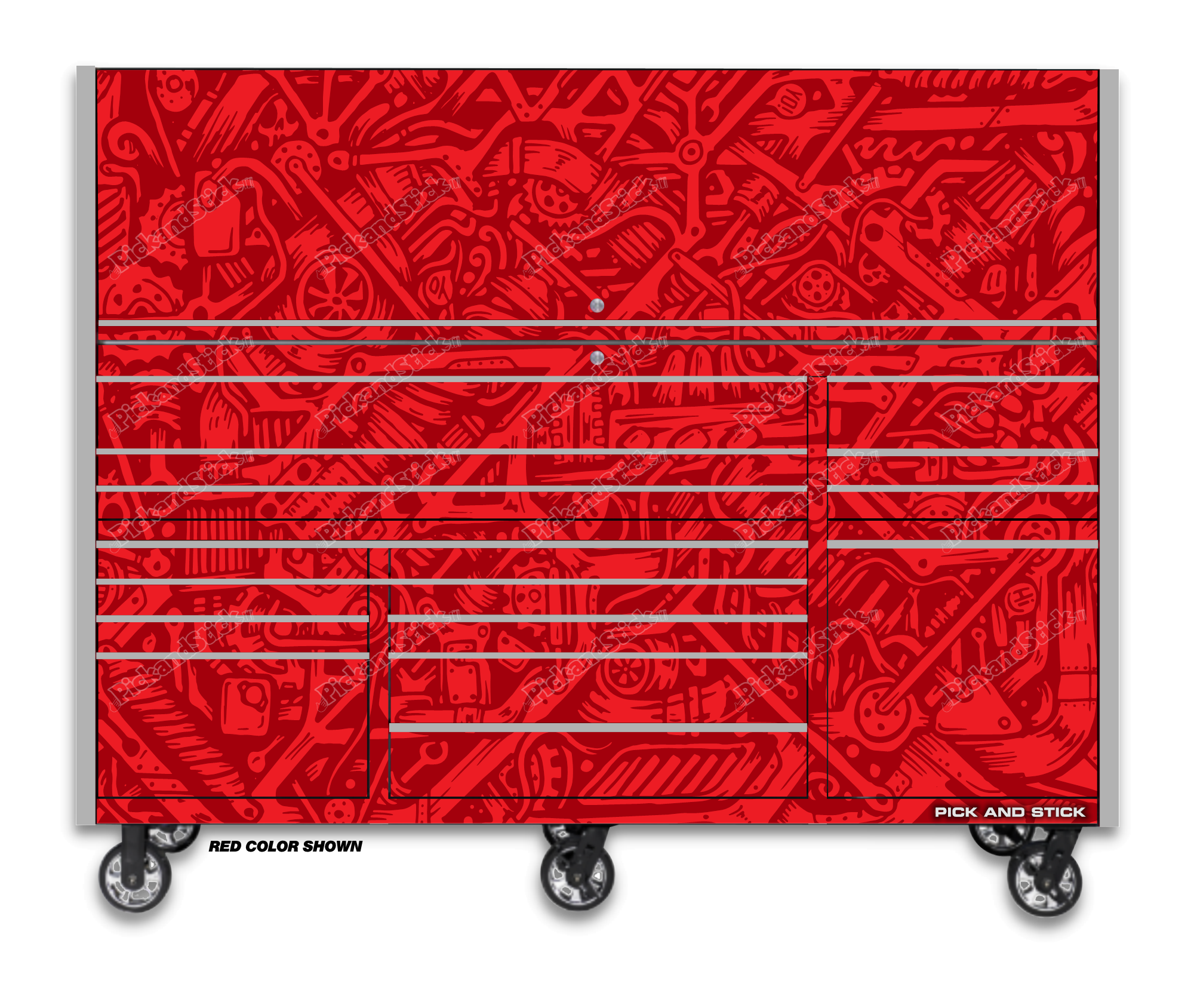 Graffiti Camo Red Toolbox Wrap are printed with 3M MCS Certified HP Latex printers on industry-leading premium 3M wrap vinyl. All graphics are covered with a clear laminate to provide long term durability and UV protection against fading and are removable. You can easily trim to fit for a simple installation. If you need a custom size Contact Us.