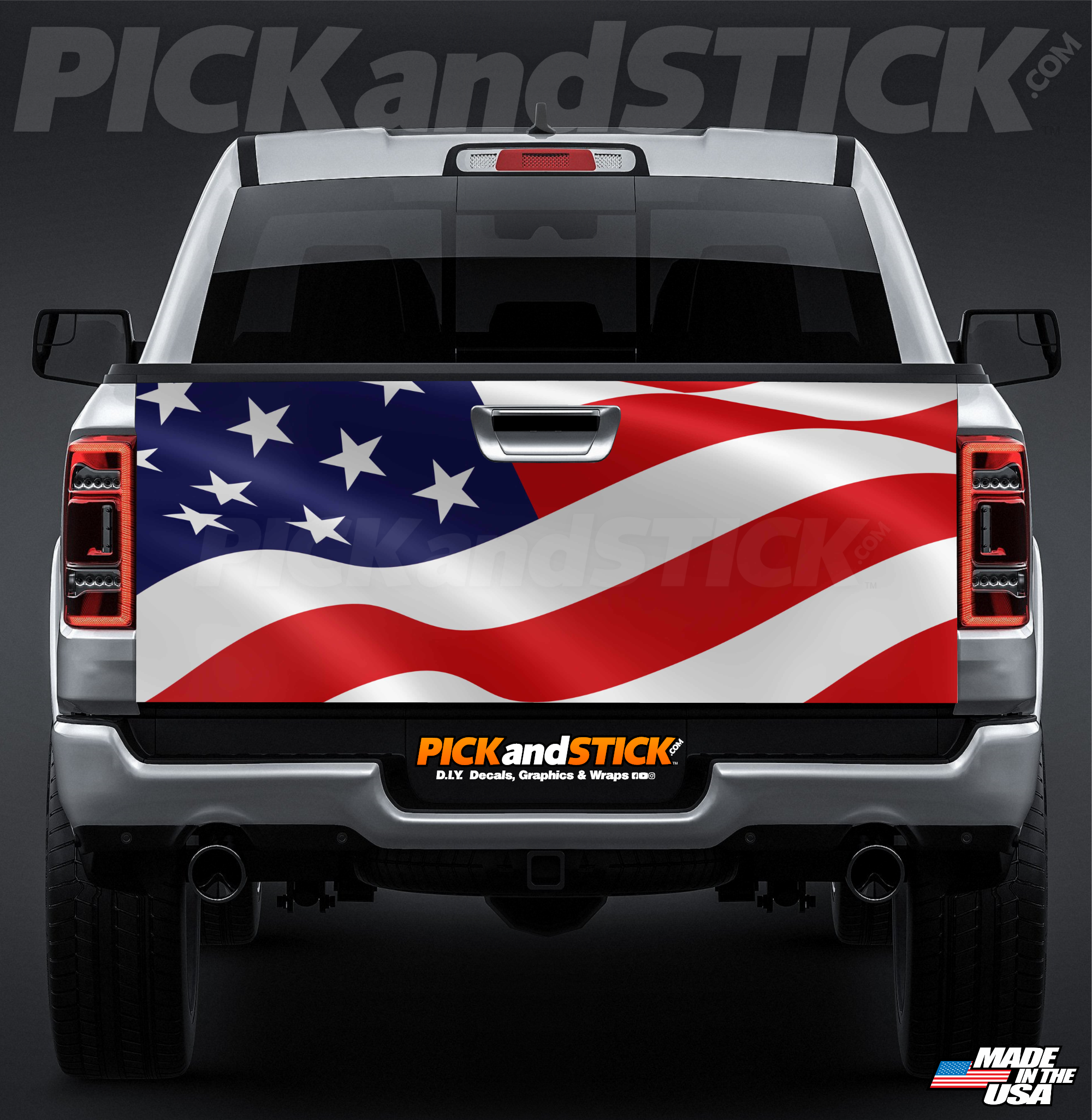 American Flag Close Up Tailgate Wrap by Pick and Stick is printed with 3M MCS Certified HP Latex printers on industry-leading 3M wrap vinyl.