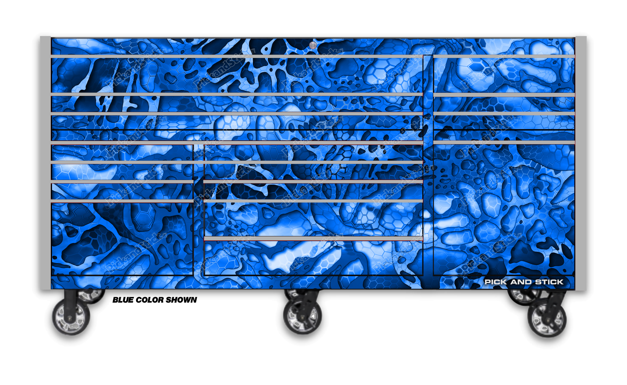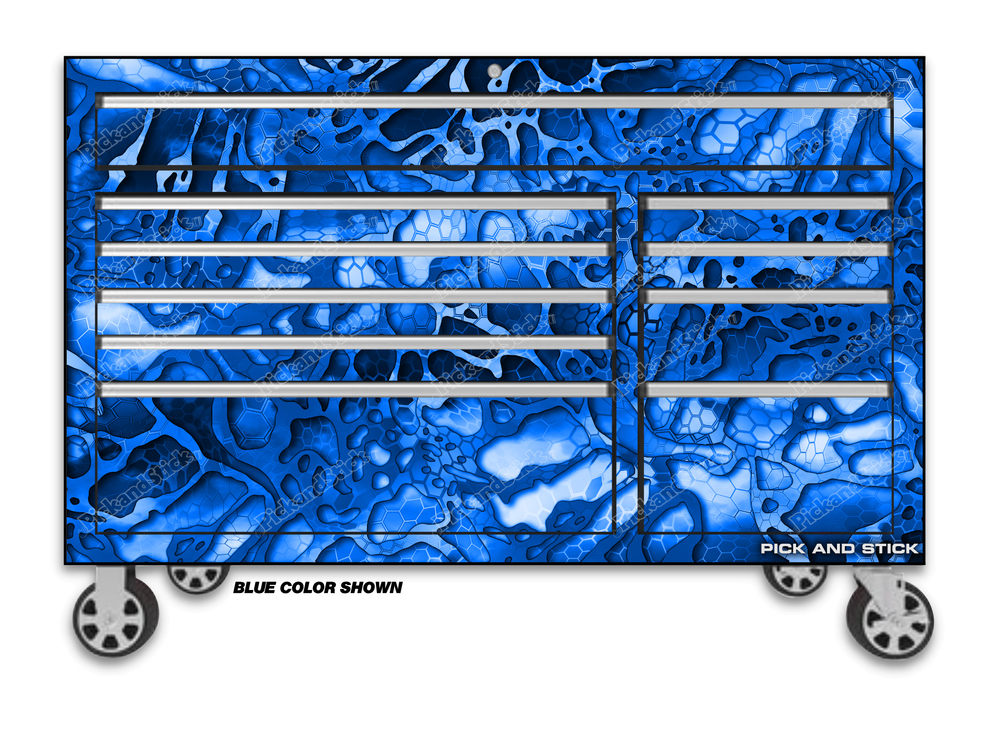 Chameleon Gen II S5 Camo Toolbox Wrap are printed with 3M MCS Certified HP Latex printers on industry-leading premium 3M wrap vinyl. All graphics are covered with a clear laminate to provide long term durability and UV protection against fading and are removable. You can easily trim to fit for a simple installation. If you need a custom size Contact Us.