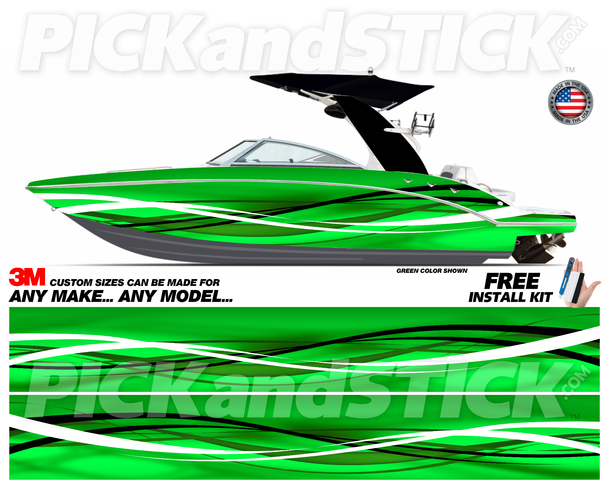 All boat wraps by Pick and Stick are printed with 3M MCS Certified HP Latex printers on industry-leading premium 3M wrap vinyl. All graphics are covered with a clear laminate to provide long term durability and UV protection against fading and are removable.